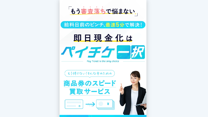 LINE完結・在籍確認・審査・買取価格・再契約・必要書類・土日祝日営業など、ペイチケ 先払い買取の特徴を調査、5ちゃんねるの投稿から利用者の評判をあわせて解説します。