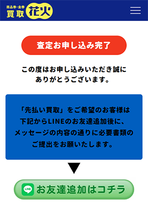 フォーム送信後に表示される画面から、買取花火の公式LINEお友だち登録してください。